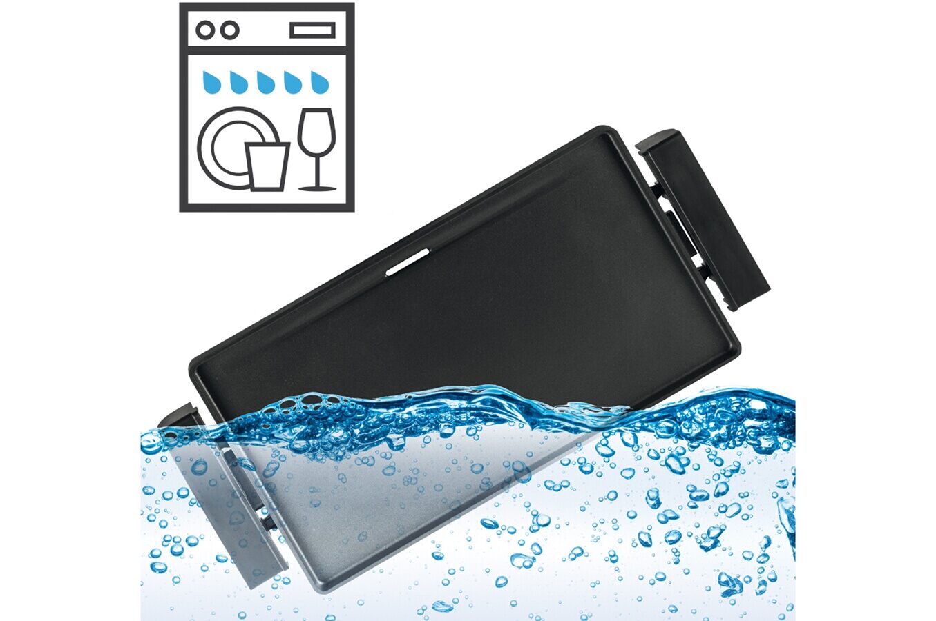 Cada placa ofrece una gran superficie de cocción de 45 x 24,5 cm o 1100 cm², lo que le asegura poder cocinar una gran cantidad de alimentos: verduras, pescado, mariscos, carnes en rodajas, etc. para deleitar a toda la familia.